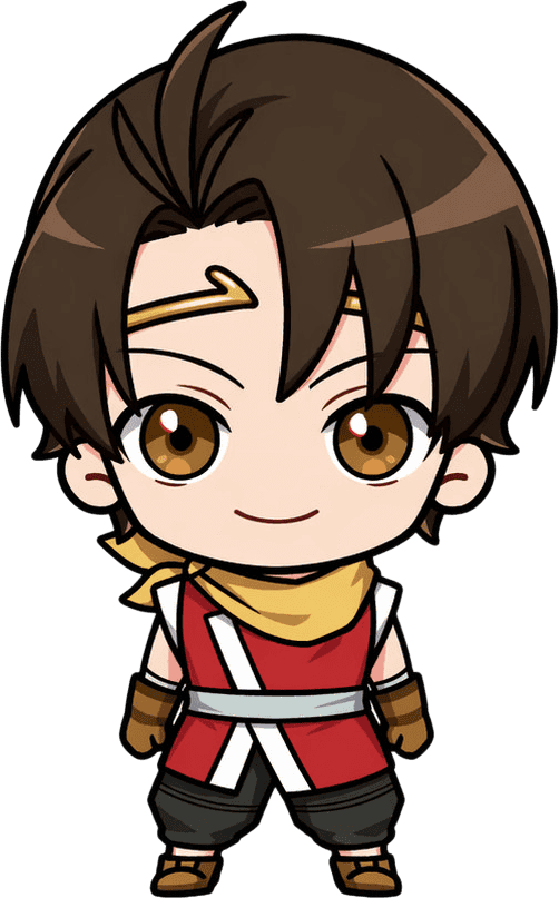 The hero was a war orphan who was adopted and raised by Genkaku at his dojo in Kyaro Town. Nanami was also picked up by Genkaku in similar circumstances and in short order, a close brother-sister relationship was formed. When the two were old enough, Genkaku trained both in martial arts. The two continued to grow healthy and progress smoothly in their martial arts training.