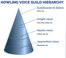 [[File:Howling Voice Guild hierarchy.png|220px|thumb|right|It's not a pyramid scheme. Our model is the cone.]] | [[File:Howling Voice Guild hierarchy.png|220px|thumb|right|It's not a pyramid scheme. Our model is the cone.]] | ||