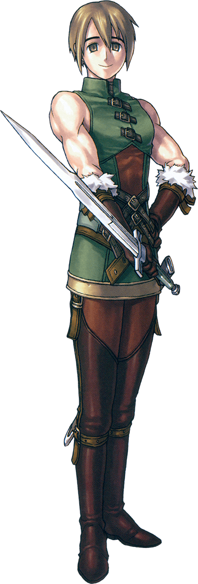 Richard is a promising young soldier in the Lindwurm Mercenary Brigade. As part of Wilhelm's unit, he serves as an assault captain, leading the charge. His mild-mannered appearance hides his true skill as a warrior. He was famed as the legendary "Blademaster" and fought with great ferocity on the field of battle. Ever since childhood, Richard was forced into learning swordsmanship by his father. One day, Mueller noticed how abusive Richard's father was and killed him - Richard has been following him ever since.