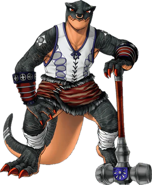 }}'''Peggi''' (ペギィ, ''Pegyi'') is a supporting character in [[Suikoden III]]. He is a [[lizard]] blacksmith who tends to yell, out of both enthusiasm and anger. | |||