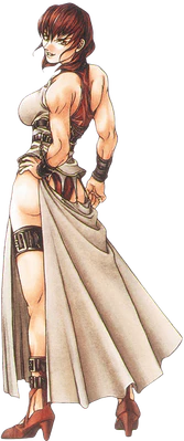 In battle, her bodyguard skills would ensure that any allies defeated on the battlefield would be protected until they could retreat. While at the New Alliance Army Headquarters, her attractiveness and physical strength earned her a fan-club, comprised mostly of women.