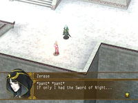 She would not be seen again until the Prince and his party had fled to Rainwall, following the Queen's Assassination. She was seen in the town, apparently attempting to concentrate on the Dawn Rune's location and later, when the Prince uncovered the Dawn Rune in the Barows' mansion, Zerase appeared once more, remarking that the Prince had better live up to the expectations of the rune, or she would kill him before vanishing once again.