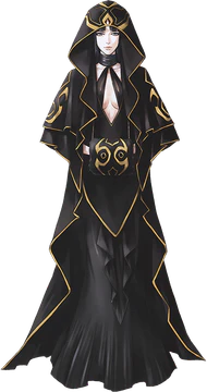 Zerase is a pale, slender woman clad exclusively in black with gold trim. According to designer concept art, Zerase's long black hair reaches to the small of her back where it is tied together. She has cool blue eyes, emphasised with purple eye shadow. Under her flowing, dark robes, she wears a sheer dress, held in place by her choker. On each wrist she wears five dark bangles. (more...)