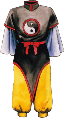 The Tai Chi Garb (たいきょくの服, Taikyoku no Fuku) is a type of equipment available in Suikoden. It was localized as the Taikioku Wear in the 1998 English localization of Suikoden.