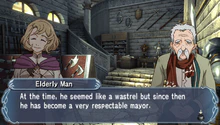 When the hero, Ilia, and Myra came to him to report the Teras Pharma attacks, Aaron was slow to act. He was apparently worried that the attacks would lead to the Ionian Army occupying Schradt and perhaps annexing it completely regardless of if there were any further attacks. When Ducas arrived to take the group to Thaksis, Aaron attempted to prevent this, to little avail.