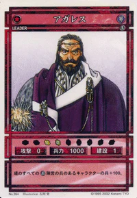 Agares (アガレス, Agaresu) is a Leader-class character card from the Genso Suikoden Card Stories TCG. It is part of the Premium Pack expansion and is numbered 264.