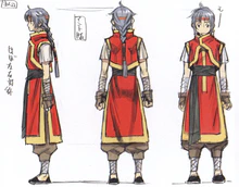 The outfit he wears the most in Suikoden V, however, is a special battle outfit made for him. In order to manipulate the special three-part staff, ease of movement was the primary consideration for this outfit.
