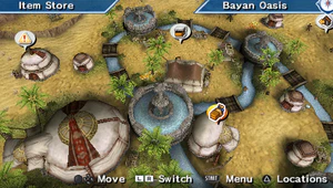 Bayan Oasis (バヤン・オアシス, Bayan Oashisu) is a location in Genso Suikoden Tsumugareshi Hyakunen no Toki. It is a southern settlement located within the Apiro Desert.