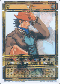 Billy (ビリー, Birī) is a Craftman-class character card from Genso Suikoden Card Stories Chapter II. It is part of the CS2 Starter Deck & Booster Pack Vol.1 release and is the card numbered CS2-110.