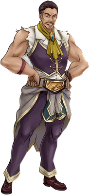 Boldon (ボールドン, Bōrudon) is a major character in Genso Suikoden Tsumugareshi Hyakunen no Toki. He is the ever-exuberant chief of Orosk Village and a martial arts master.