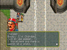 Chandler (チャンドラー, Chandorā) is a character in Suikoden. An idle peddler, he was recruited to join the Toran Liberation Army and sold his wares to supply the soldiers in their effort.