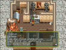 Upon becoming a member of the Liberation Army, Chapman established an armor shop within Toran Castle, offering the finest armor available at all times. His straightforward nature was evident as he never hesitated to demand payment for his products and services, even from his comrades in the fight for freedom.