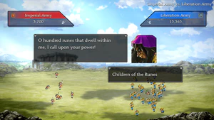 The Children of the Runes were a magic unit led by Crowley, Luc, and Lotte. As a squadron led by a trio of experts in rune magic, their power far surpassed that of other magic units in the Toran Liberation Army.