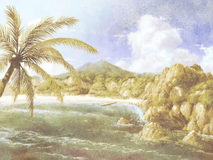 This deserted island was located in the center of the Island Nations, far from any inhabited islands. As such, its was untouched and fully covered by nature. Its beautiful sandy beaches and dense jungles, as well as an underground lake, also meant the island was inhabitable.