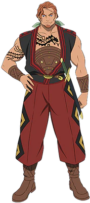 Dromon (ドロモン, Doromon) is a supporting character in Suikoden Tierkreis. Dromon is the eldest of the three Dromon pirates and their leader.