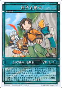 Characters with 0 MIL deployed to this mission lose -2 STR. When this mission is cleared, the clearing player may search their deck for a character with 0 MIL.