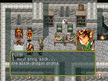 Later, Futch was reunited with the leader of the Toran Liberation Army at the Dragon's Den while the dragons were filled from a sleeping sickness. Impatient and wanting to help prepare a cure, Futch rushed off to gain a needed ingredient, the Black Dragon Orchid, from Gregminster Palace's Floating Garden.