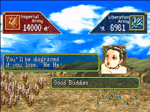 The Good Buddies were an infantry charge unit led by Marie, Onil and Sansuke. These three individuals seemed unlikely candidates to fight in large-scale battles but it seems like they felt the need to participate, despite their low strength.