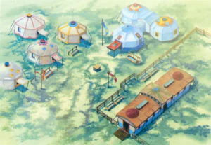 Gordius is a village located in the southwest of the Queendom of Falena that exists as a training ground for apprentices in the Feitas Dragon Cavalry. There is a dragon horse nest to the rear of the village, where Dragon Cavalry apprentices meet and bond with their future mounts.