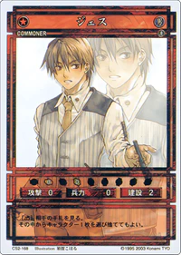 Jess (ジェス, Jiesu) is a Commoner-class character card from Genso Suikoden Card Stories Chapter II. It is part of the CS2 Booster Pack Vol.2 release and is the card numbered CS2-168.