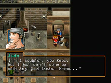 Jude (ジュド, Judo) is a character in Suikoden II and Genso Suikogaiden Vol.1. Jude is a sculptor who worked for New Leaf Academy and the New Alliance Army.
