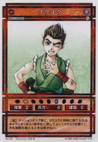 Koyu (コウユウ, Kouyuu) is a Commoner-class character card from the Genso Suikoden Card Stories TCG. It is part of the Premium Pack expansion and is numbered 293.