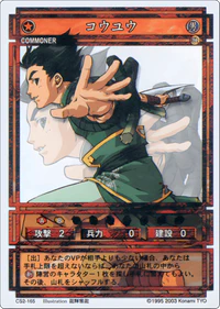Koyu (コウユウ, Kouyuu) is a Commoner-class character card from Genso Suikoden Card Stories Chapter II. It is part of the CS2 Booster Pack Vol.2 release and is the card numbered CS2-165.