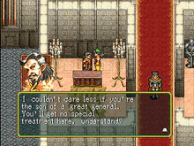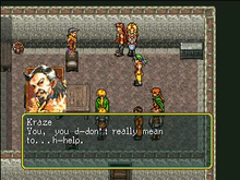 • Kraze is the only character in Suikoden that can be executed without imposing any long-term penalties on game completion. If you do not execute him, he will run off, never to be seen again, and Gremio will chide you for it, although Cleo will praise you for having a big heart.