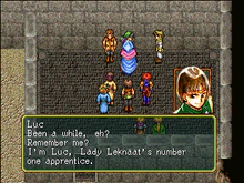 In the 1996 English-language localization of Suikoden, when he summons the Clay Doll, Luc merely calls it forth with a wind rune, but in the original Japanese and 2025 Suikoden I&II HD Remaster English localization, he uses the True Wind Rune to do so.