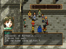 When Leknaat gifted the New Alliance Army the Stone Tablet of Promise during the Dunan Unification War, she also gifted them Luc, despite his own consternation. However, Luc was focused when he noticed the presence of the Harmonian officer Sasarai in a skirmish at Radat Town.
