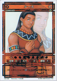Luce (ルース, Rūsu) is a Commoner-class character card from Genso Suikoden Card Stories Chapter II. It is part of the CS2 Starter Deck & Booster Pack Vol.1 release and is the card numbered CS2-062.