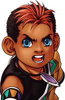 Lulu is a Karayan youth with brown skin, black and red hair, and bright blue eyes. His red hair is not dyed and, much like Hugo, is a remnant of his ancestry and is viewed as a blessing by the Karaya.