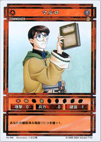 Marlowe (マルロ, Maruro) is a Commoner-class character card from the Genso Suikoden Card Stories TCG. It is part of the Booster Pack Vol.1 expansion and is numbered 066.