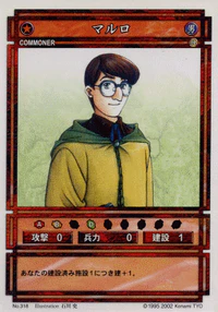 Marlowe (マルロ, Maruro) is a Commoner-class character card from the Genso Suikoden Card Stories TCG. It is part of the Premium Pack expansion and is numbered 318.