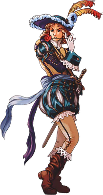 His weapon names Rosage, Marguerite and Orchidees are identical to those of Milich Oppenheimer in Suikoden.