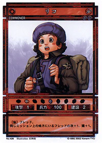 Rico (リコ, Riko) is a Commoner-class character card from the Genso Suikoden Card Stories TCG. It is part of the Booster Pack Vol.3 expansion and is numbered 428.