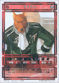 Ridley (リドリー, Ridorī) is a Leader-class character card from Genso Suikoden Card Stories Chapter II. It is part of the CS2 Booster Pack Vol.2 release and is the card numbered CS2-156.