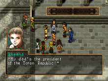 During the Gate Rune War, annoyed by his son's indolence, Lepant cast Sheena out into the world on a learning excursion. The youth did not take the intended project at face value. Later, Sheena was discovered flirting in Seika, boasting about his family's wealth, when he was overheard by Lepant. Unhappy at his son's playboy attitude, Lepant forced his son to join the Toran Liberation Army with the aim of making Sheena into a mature adult.