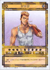Shilo (シロウ, Shirō) is a Craftman-class character card from the Genso Suikoden Card Stories TCG. It is part of the Starter Box & Booster Pack Vol.1 expansion and is numbered 082.