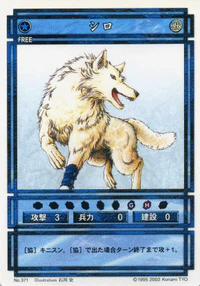 Shiro (シロ, Shiro) is a Free-class character card from the Genso Suikoden Card Stories TCG. It is part of the Premium Pack expansion and is numbered 371.