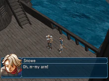 Snowe Vingerhut (スノウ・フィンガーフート, Sunō Fingāfūto) is a major character in Suikoden IV who also appears in Suikoden Tactics. Snowe is the spoilt but generally well-intentioned son of Vincent Vingerhut, lord of Razril.