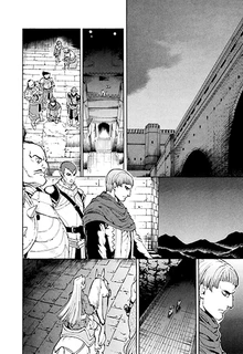 At Budehuc Castle, Hugo shares his story with Thomas. In turn, Thomas reveals how the loss of his mother in a Grasslands attack brought him to Budehuc and how it has inspired him to create a peace where people from all places can thrive. Thomas' eavesdropping comrades burst in to proclaim their devotion to his cause.