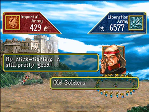 The Elderly Warriors (老戦士, Rōsenshi) are a military unit in Suikoden. They were localized as the Old Soldiers in the 1996 English localization of Suikoden.