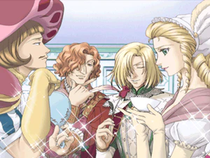 Gorgeous Scarleticia is also an arrangement of this track, and is frequently used as the basis for further arrangements. In Genso Suikogaiden Vol.2, this arrangement features during the scenes where Nash Latkje encounters the narcissist characters from Suikoden and Suikoden II. The song also received a vocal rendition in the 2003 album Genso Suikoden Vocal Collection ~Distant Star: Echoes Of Love~, sung in English by Shintani Sanae.