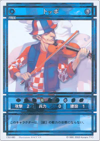 Toppo (トッポ, Toppo) is a Free-class character card from Genso Suikoden Card Stories Chapter II. It is part of the CS2 Starter Deck & Booster Pack Vol.1 release and is the card numbered CS2-083.