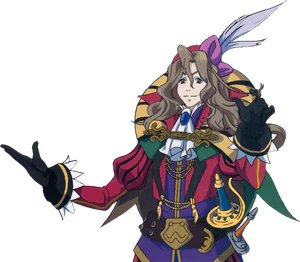 Yofeurs (ヨフール, Yofūru) is a supporting character in Genso Suikoden Tsumugareshi Hyakunen no Toki. Yofeurs is a highly narcissistic and flamboyant, but skilled, craftsman.