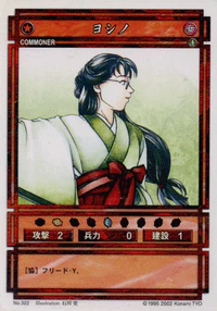 Yoshino (ヨシノ, Yoshino) is a Commoner-class character card from the Genso Suikoden Card Stories TCG. It is part of the Premium Pack expansion and is numbered 322.