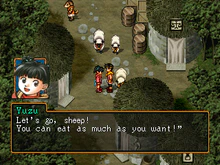 Yuzu (ユズ, Yuzu) is a character in Suikoden II who also appears in Genso Suikogaiden Vol.2. Yuzu is a young shepherdess who participated in the Dunan Unification War.